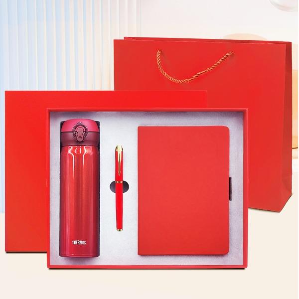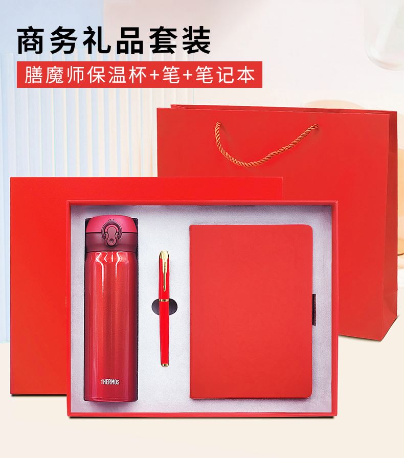 禮盒配置: 1、膳魔師牌保溫杯(500ml)尺寸225X70mm 2、A5搭扣硬皮PU皮筆記本 3、金屬烤漆簽字筆 4、包裝盒尺寸:328x263x75mm 5、手提袋尺寸:335x293x85mm 6、重量:27kg/箱