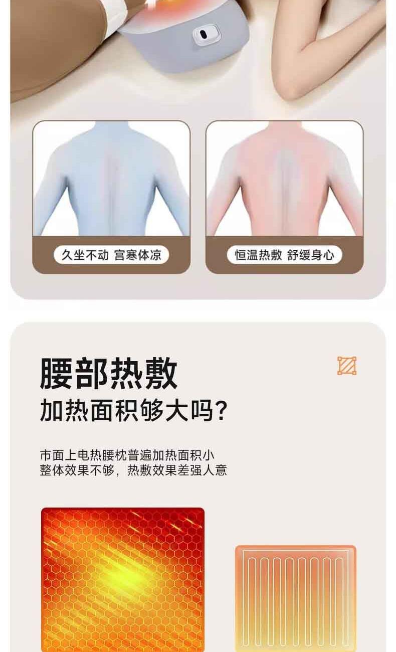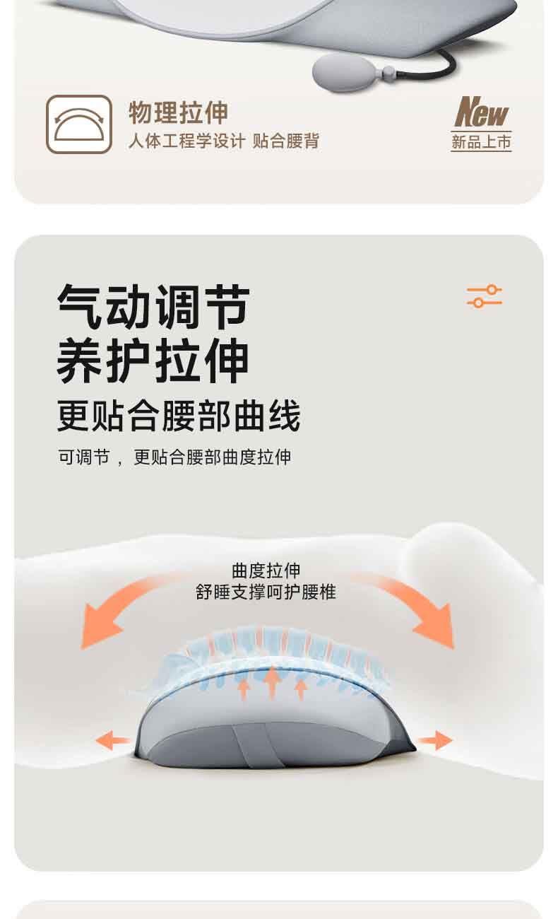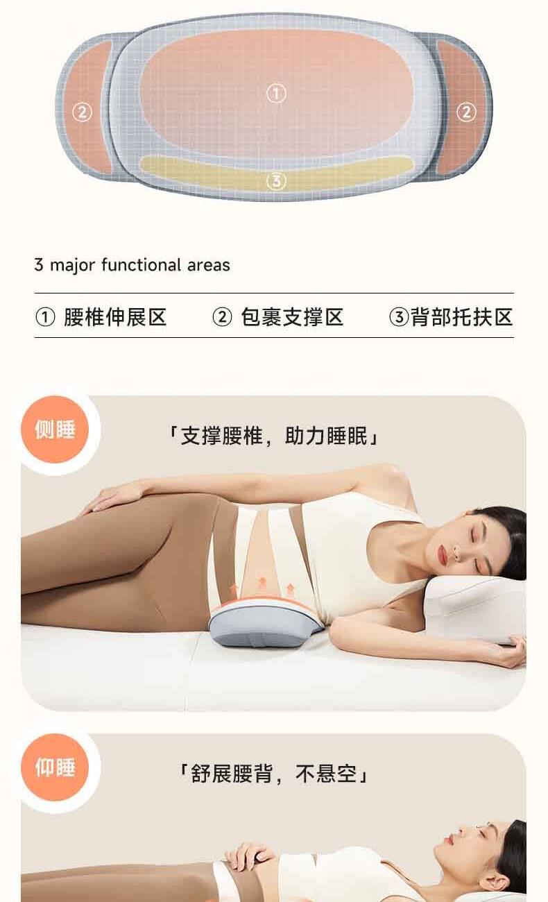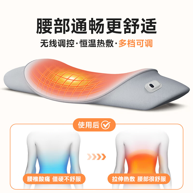 【軸向拉伸】改善“腰椎突出”,緩解“疼痛僵硬”。 【3維度拉伸】分區(qū)拉伸, 3D無死角,腰椎呵護。 【巴斯夫進口記憶棉】間隙更小,吸收沖擊動能,不易變形。 【新科技面料】體感細膩,柔彈健康面料。 【可控溫】熱敷,三檔控溫: 45度、55度、65度,溫暖您的身心。 【智能定時】設(shè)計: 15分鐘、30分鐘、45分鐘,到點停止加熱。