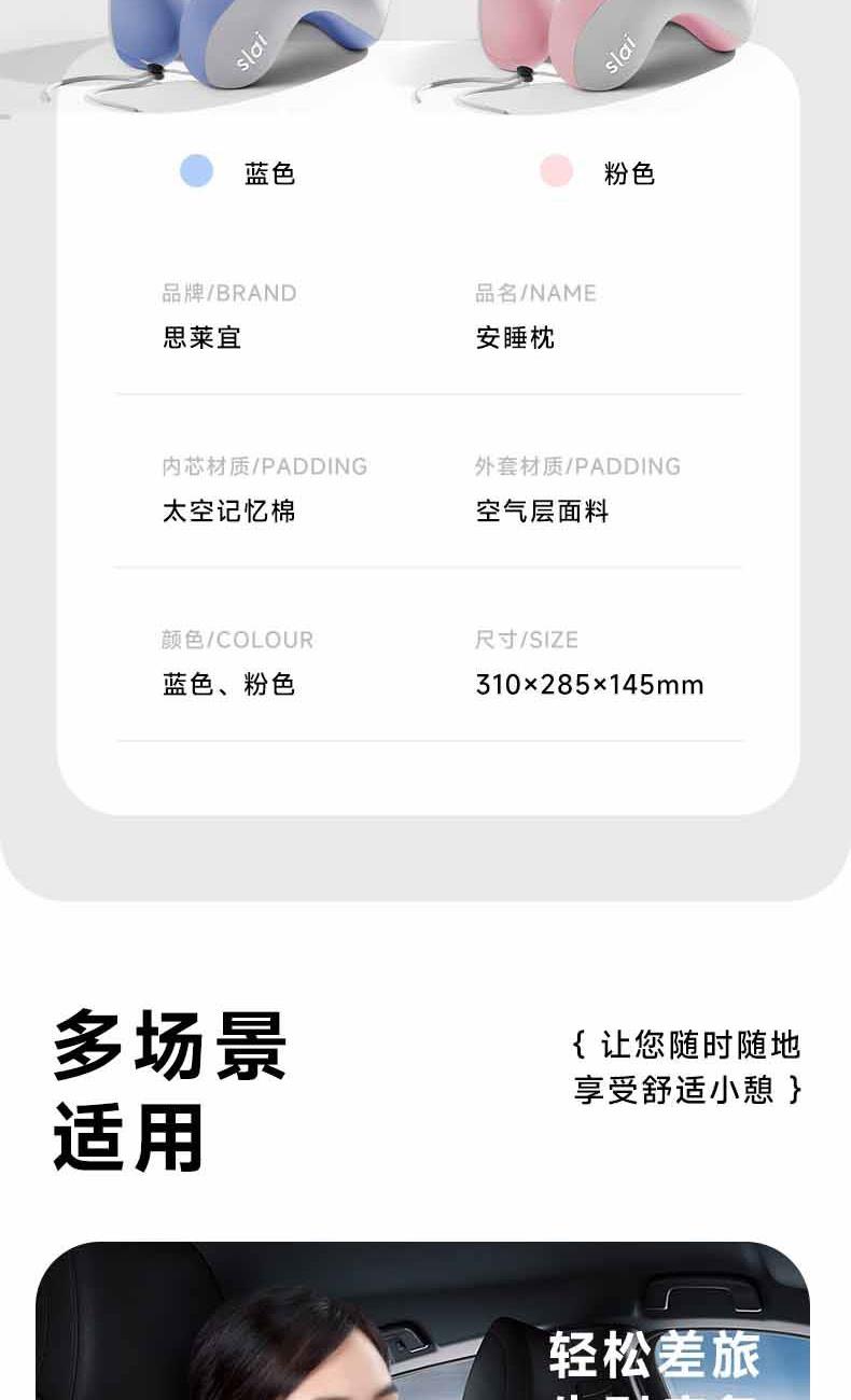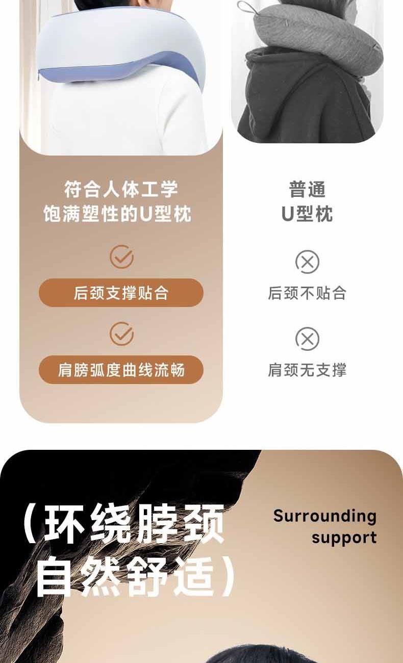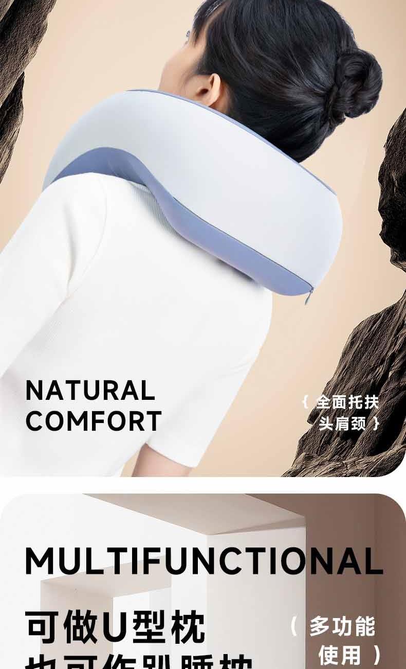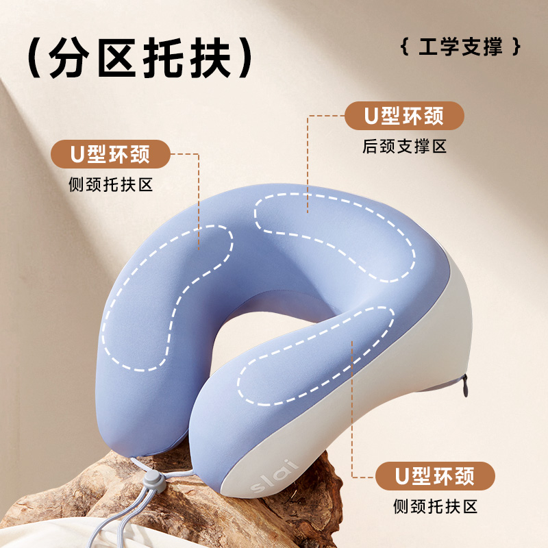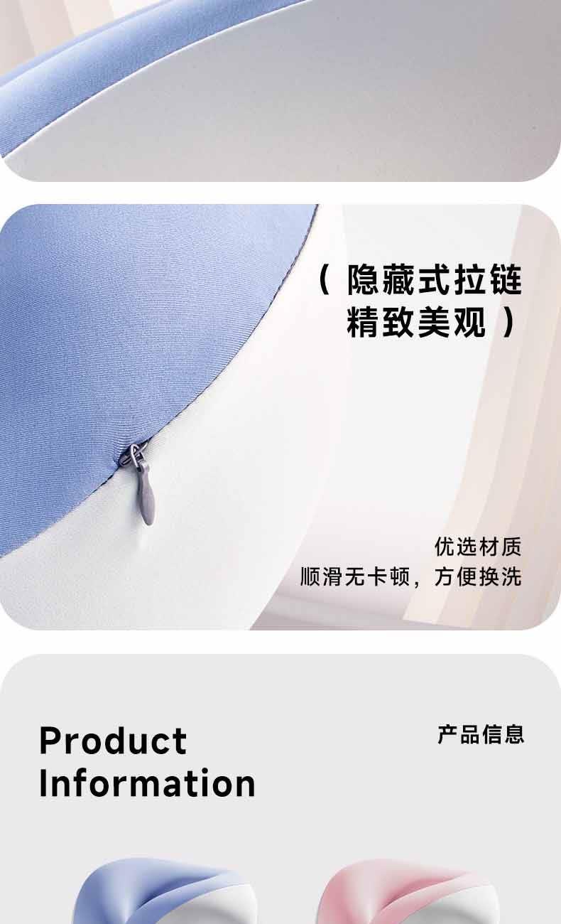 【人體工學(xué)設(shè)計】分區(qū)托扶,減輕頸部承壓; 【波段曲線設(shè)計】 自然貼合臉部,可趴睡使用; 【 U型開口設(shè)計】一秒可變u型枕,倚靠休息有支撐; 【親膚面料】透氣親膚不刺激